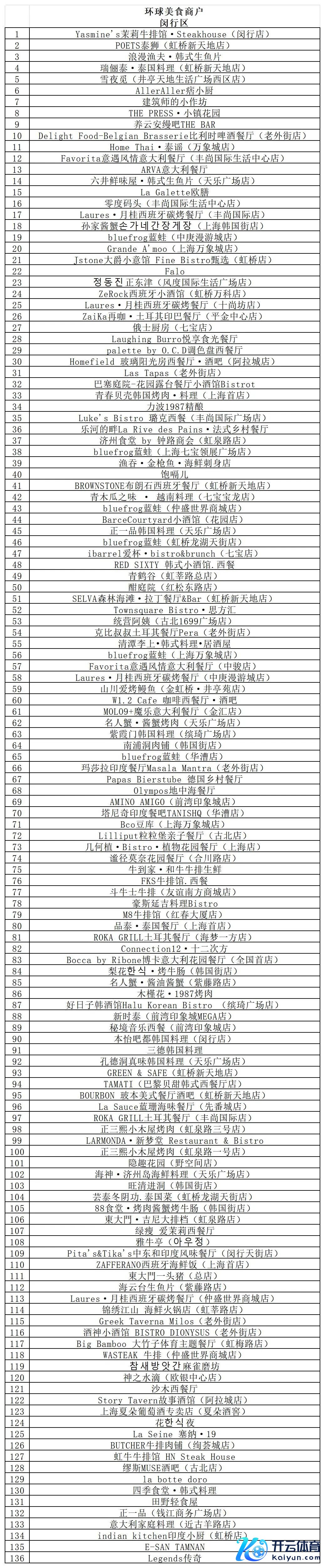 体育游戏app平台闵行上榜餐厅品类丰富、品性零星-开云官网登录入口 开云app官网入口