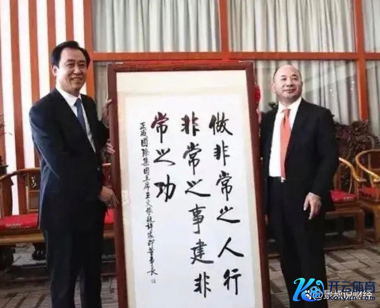 王文银的贸易帝国确凿开动垮塌,是从他与恒大的融合开动的,他与恒大独创东说念主许家印的探究一直相配密切,以致还为许家印写过一首藏头诗“许家印超卓且伟大”。两东说念主惺惺惜惺惺,每每互动,王文银更是对恒大的投资不遗余力。