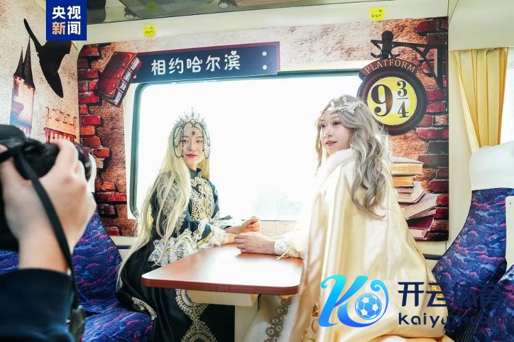 1月2日开yun体育网,在哈尔滨开往亚布力的K5197次搭客列车上,游客换上璀璨服装,在不同立场的主题车厢内体验旅拍打卡办事。这是本年开行的寰宇首趟冰雪旅拍主题搭客列车。
