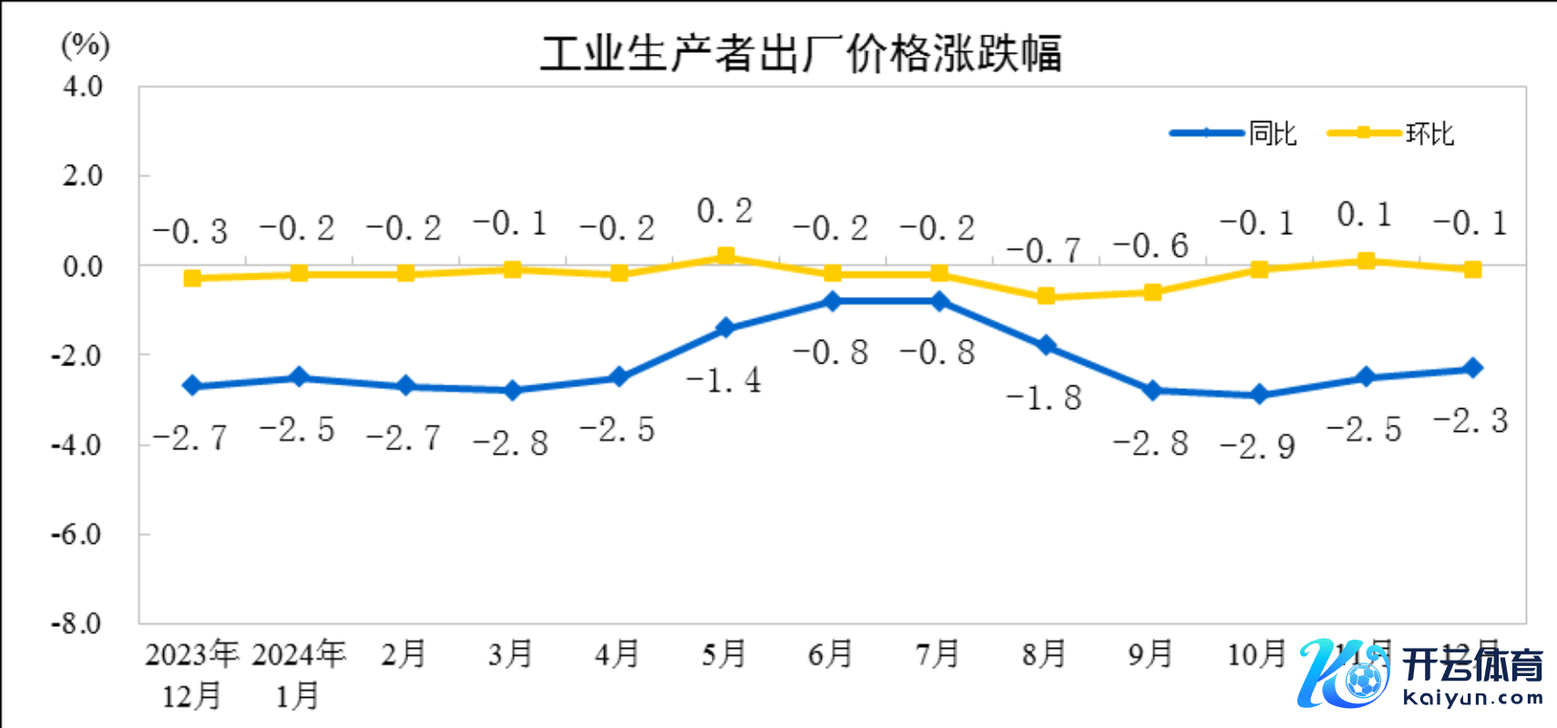 2024年12月份,寰宇工业出产者出厂价钱(PPI)同比下降2.3%,降幅比上月收窄0.2个百分点;环比下降0.1%。2024年全年,工业出产者出厂价钱下降2.2%,降幅比上年收窄0.8个百分点。
