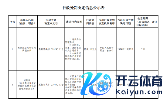 1月10日金融一线讯息,中国东谈主民银行黑龙江省分行行政处罚决定信息公示披裸露,黑龙江省农村信用社蚁集社因三项违规举止类型,被罚金156万元。违规举止类型如下: