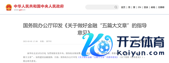 为贯彻落实党中央、国务院决策部署,推行为念好科技金融、绿色金融、普惠金融、待业金融、数字金融“五篇大著作”,加速开采金融强国,日前,国务院办公厅印发《对于作念好金融“五篇大著作”的指导倡导》(以下简称《指导倡导》),提议关系倡导。