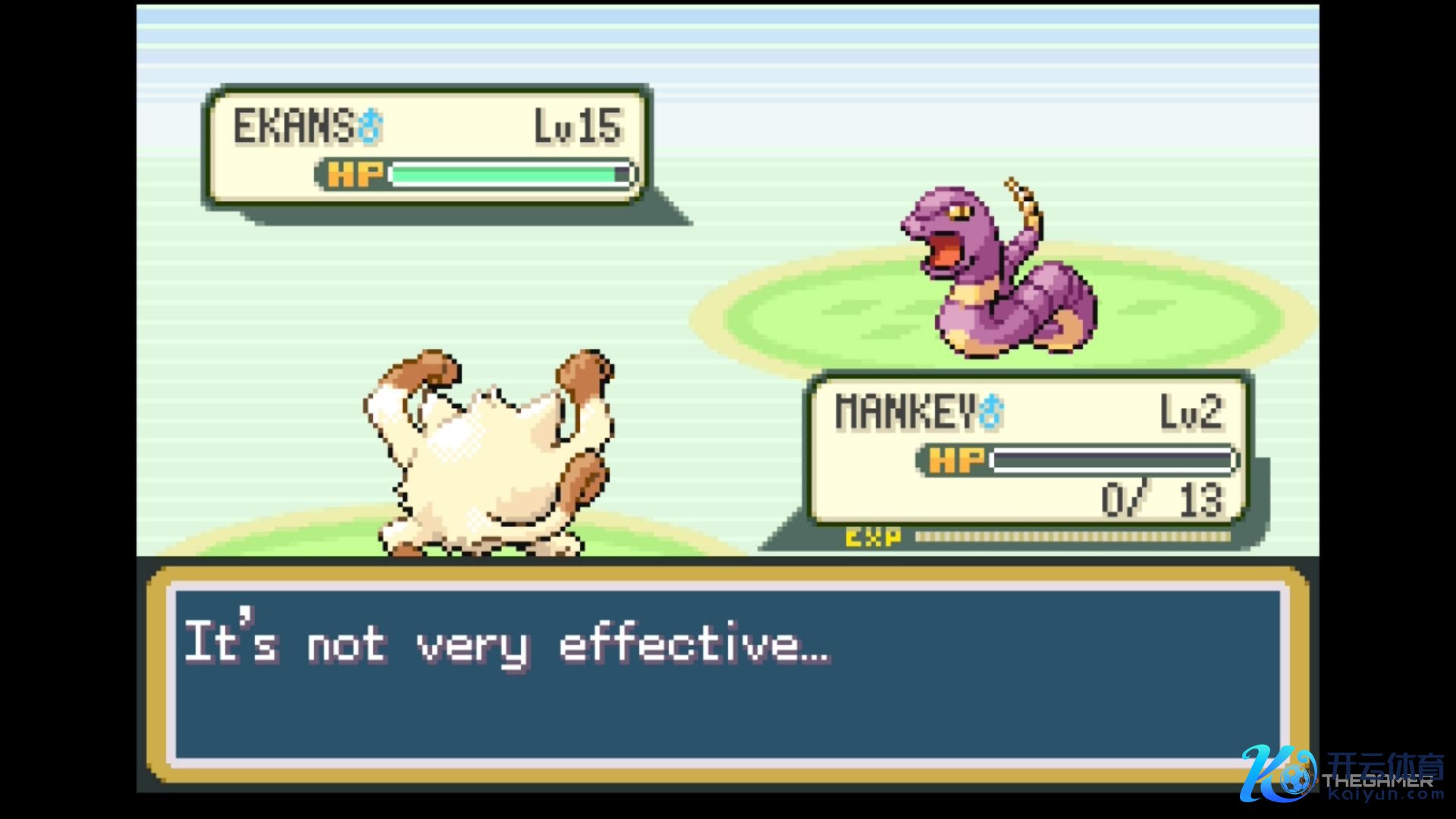 在这种情况下,咱们使用了一只在 2 号谈路捕捉的 2 级猴怪。一朝被火箭队部下的阿柏蛇打败,你就会目下发黑并回到宝可梦中心。