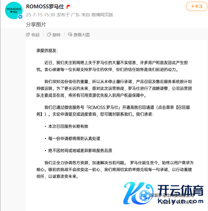 罗马仕最新声明:从未罢手履行欢喜 居品调回及售后奇迹系统按计较捏续启动罗马仕最新声明:从未罢手履行欢喜 居品调回及售后奇迹系统按计较捏续启动